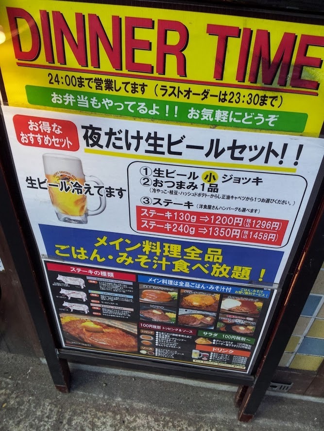 ステーキ屋が見えたので、お店に入れるかどうかの確認・メニューのラインナップ確認だけでも、と近づいてみました。