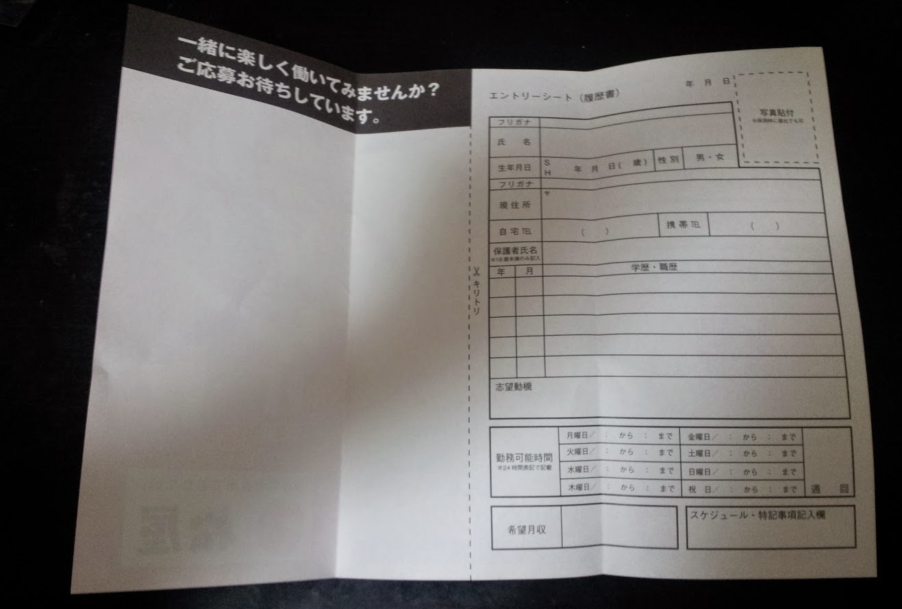 お店の外観の写真を撮ってみたときに、アルバイト募集のチラシがあったので、回収してみました。