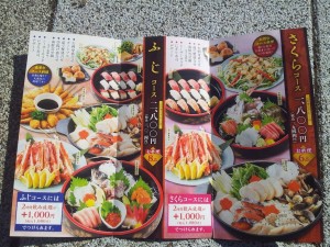 お店を出る時に、宴会チラシ等も頂いてみましたので、目を通してみました。