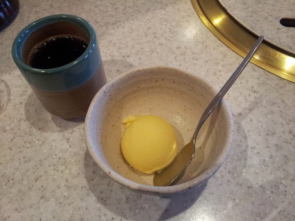 注文時に、「食後に、ホットコーヒーかアイスコーヒーか柚子シャーベットをおつけできますが、いかがいたしますか?」と聞かれましたので、柚子シャーベットをお願いしました。