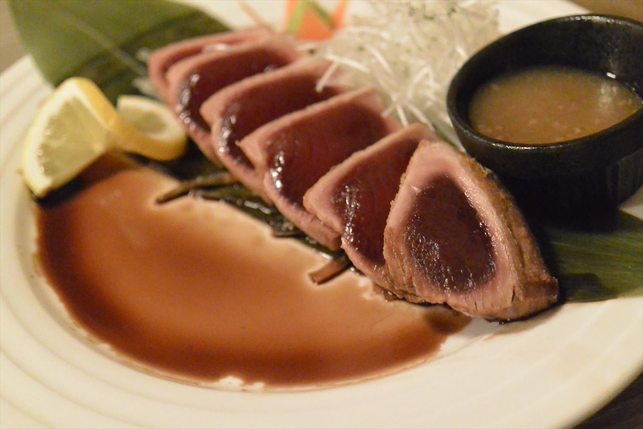 鮪のレアステーキは、付け合せのネギや、タレを和えながらいただきました。
